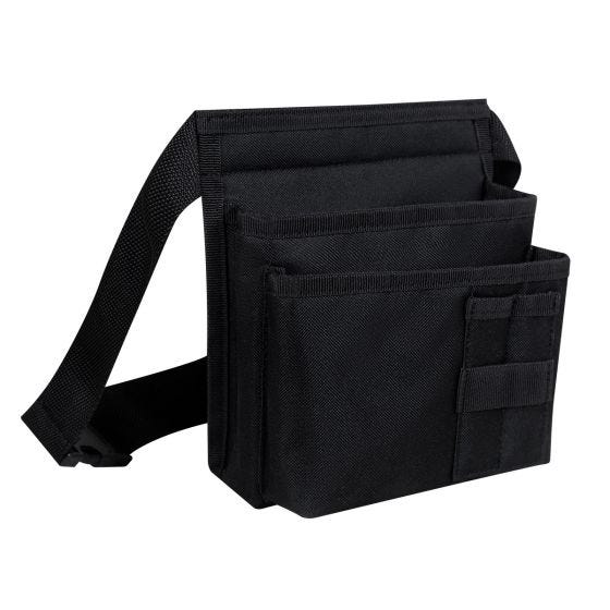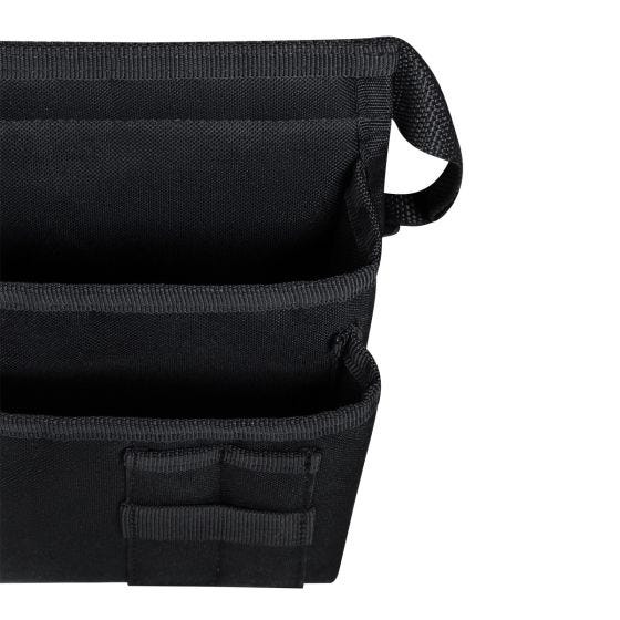 Bolsa para herramientas con cinturon ajustable y broche de plastico. Incluye dos amplios compartimentos para colocar y tener acceso rapido a llaves, cintas, pinzas etc… En la parte frontal se agregan dos compartimentos para destornilladores y 1 cinta porta martillo.