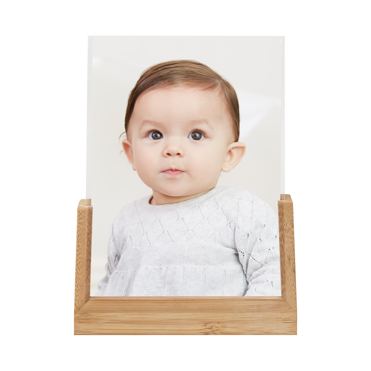 Portarretrato con diseño minimalista, su placa de acrilico permite cambiar facilmente tus fotografias. Apto para foto en formato vertical y tamaño de 12 x 15.7 cm.