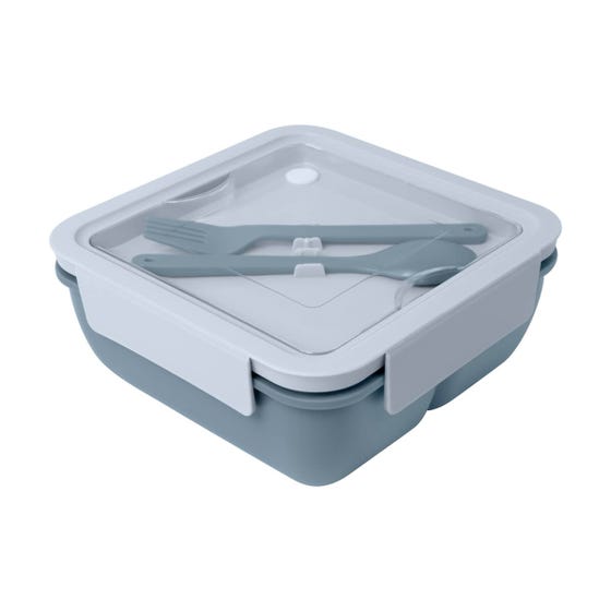 Contenedor de alimentos compacto y versatil con divisor interno para mantener tus alimentos seguros y organizados. Tapa con cierre hermetico de cuatro pestanas para evitar derrames. Sobre tapa con compartimento integrado que incluye un tenedor y una cuchara. Su innovador diseno, ofrece una solucion practica para transportar tus alimentos a cualquier lugar. Apto para microondas.