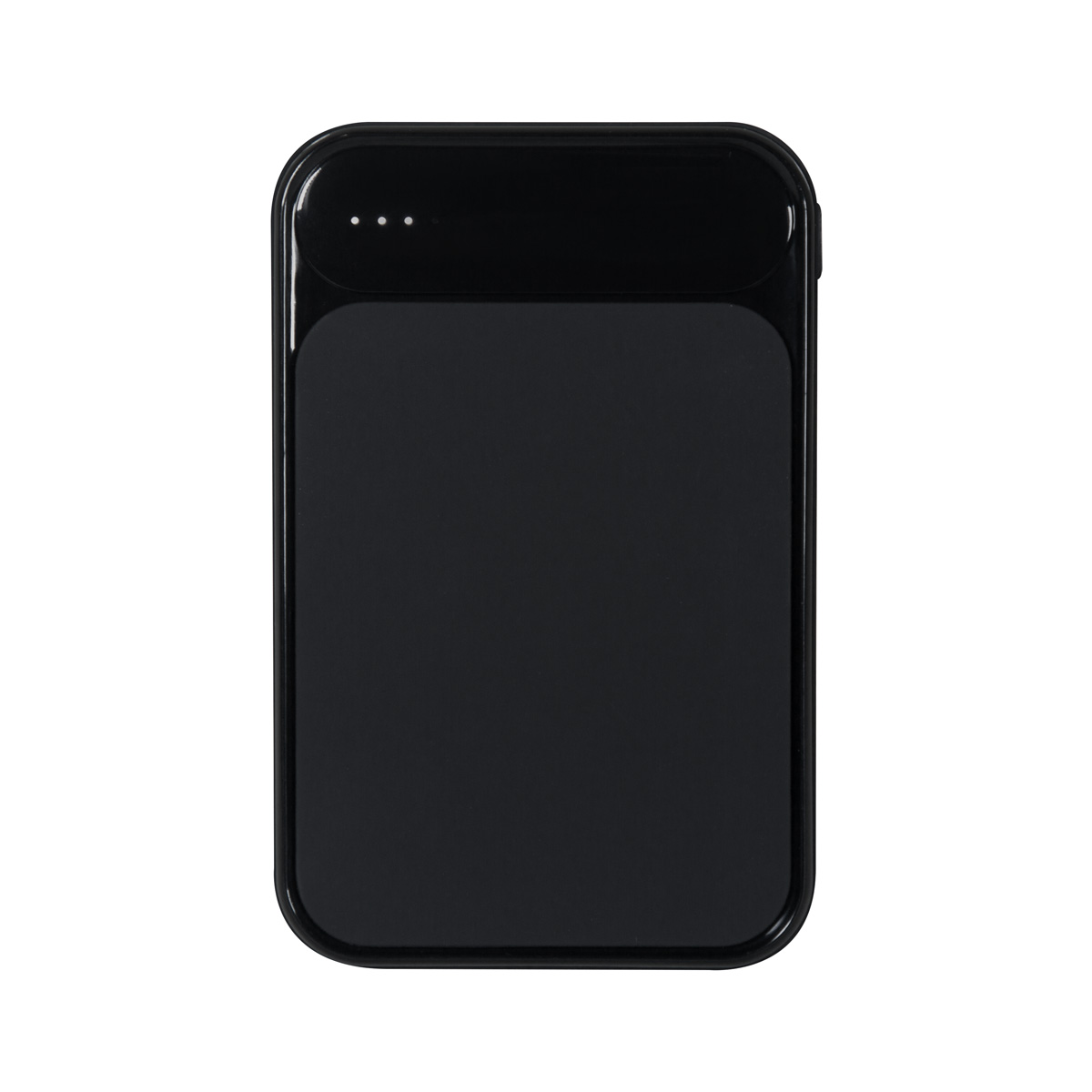 Bateria auxiliar para smartphone, capacidad 5,000 mAh. Logotipo de ilumina al aplicar grabado laser. Contiene 1 puerto de entrada tipo C para carga de la bateria, y 2 puertos de salida USB para carga de dispositivos. Incluye display indicador de carga, cable con conector tipo C y caja individual.