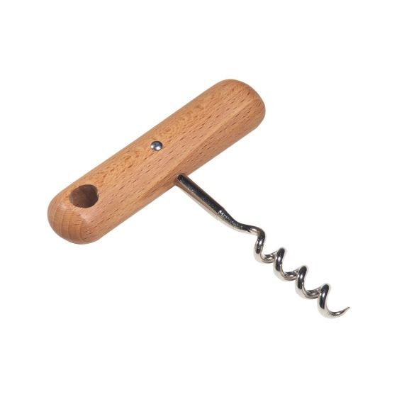 Sacacorchos de madera con espiral metálico de acero inoxidable. Su diseño ergonómico y minimalista proporciona una experiencia de uso sin complicaciones, permitiéndote abrir tus botellas con facilidad. Fabricado con materiales ligeros y resistentes. Cuenta con un práctico orificio para colgarlo, lo que te permite mantenerlo al alcance de la mano en todo momento.