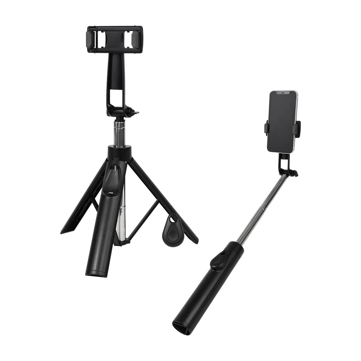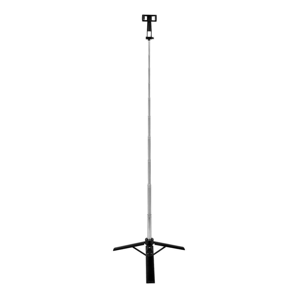 Selfie stick con tripie amplio para mayor estabilidad. Incluye control remoto Bluetooth con alcance de hasta 10 m, ideal para capturar fotos o videos a distancia. Su brazo extensible de 86 cm y su holder ajustable garantizan angulos perfectos para cada toma. Perfecto para selfies, videollamadas o grabaciones creativas. El control remoto funciona con bateria de boton (incluida).