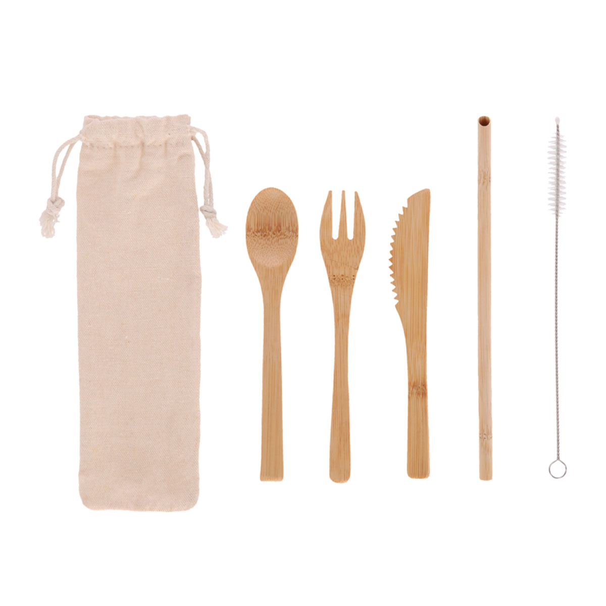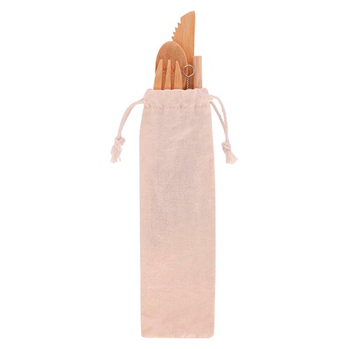 set de cubiertos eco deja vu(set de cubiertos de bambú. incluye tenedor, cuchara, cuchillo, popote, cepillo limpiador y bolsa.)