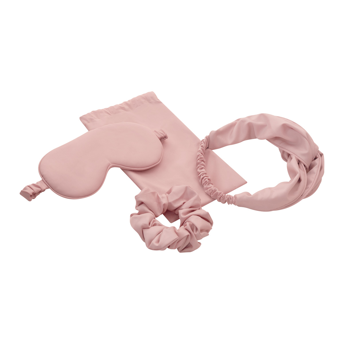 Set de descanso con 3 accesorios. Incluye bolsa con jareta, antifaz ajustable, banda y liga para el cabello. Gracias a la delicadeza de la fibra de bambu, cada pieza es ultra suave al tacto, lo que brinda una sensacion de confort inigualable. Perfecto para viajes o para tu rutina diaria, hace que cada momento de autocuidado sea una experiencia placentera.