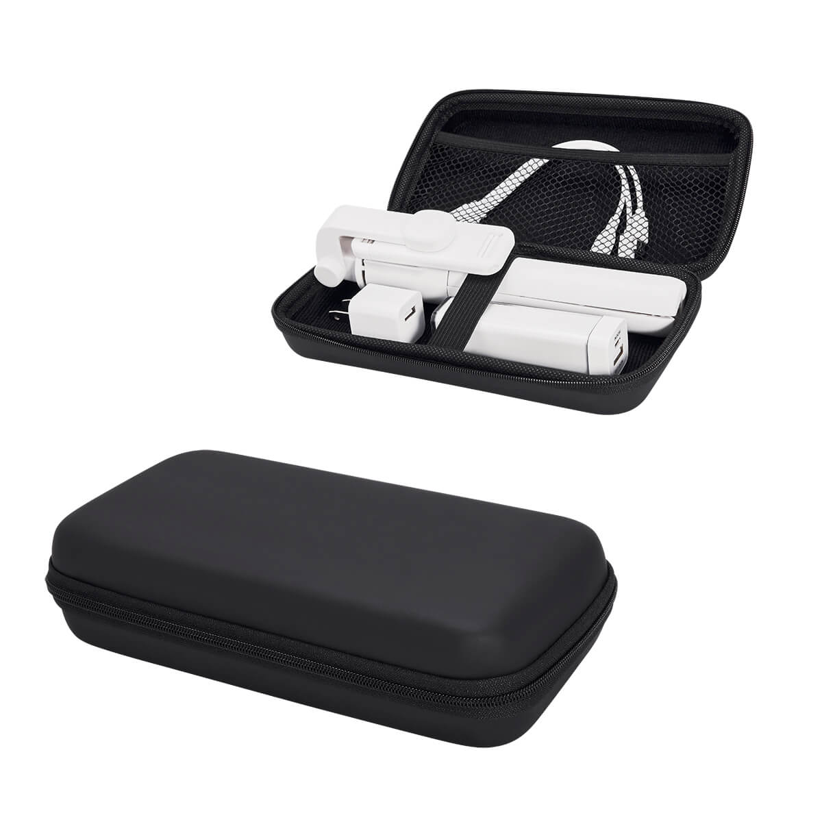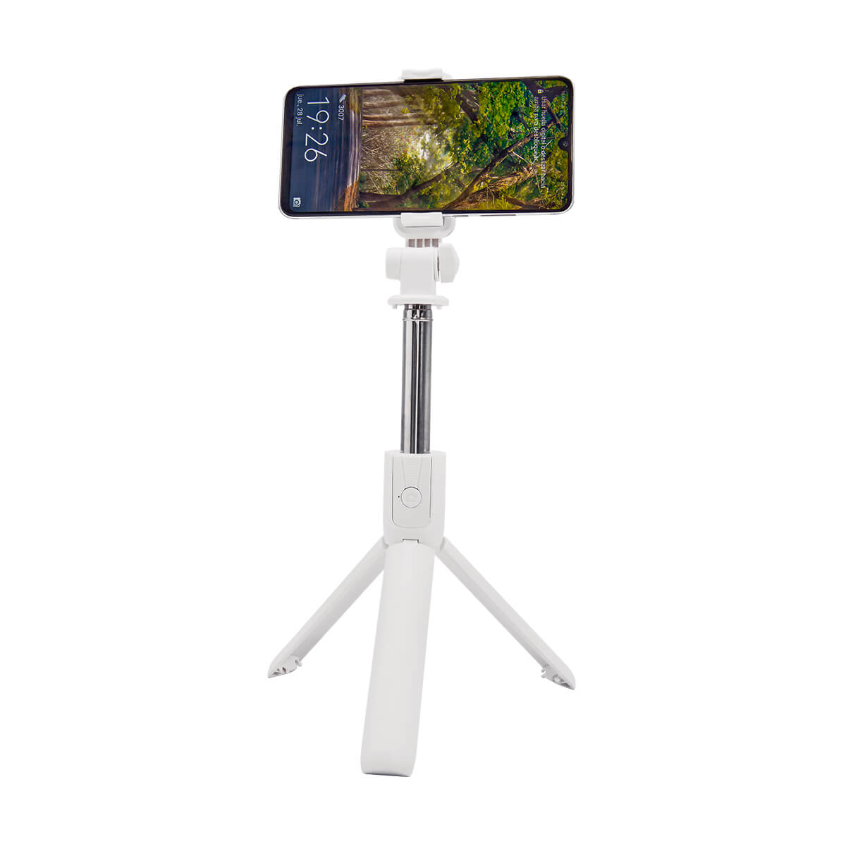 Incluye selfie stick inalámbrico con bluetooth, batería auxiliar de 2,200 mAh, cargador de pared, cable cargador USB 3-en-1 (micro USB, tipo C y Lightning) y estuche
