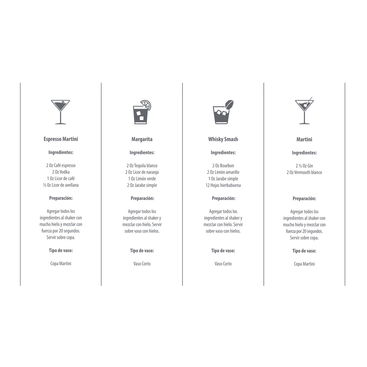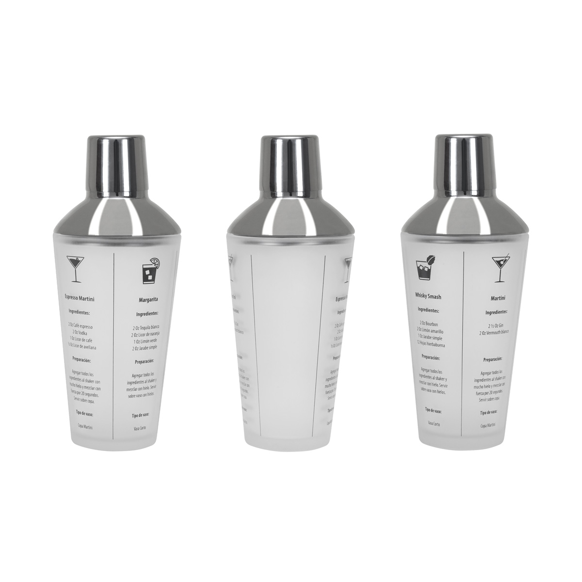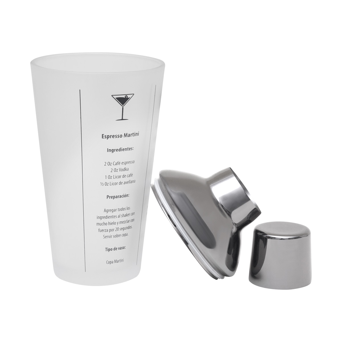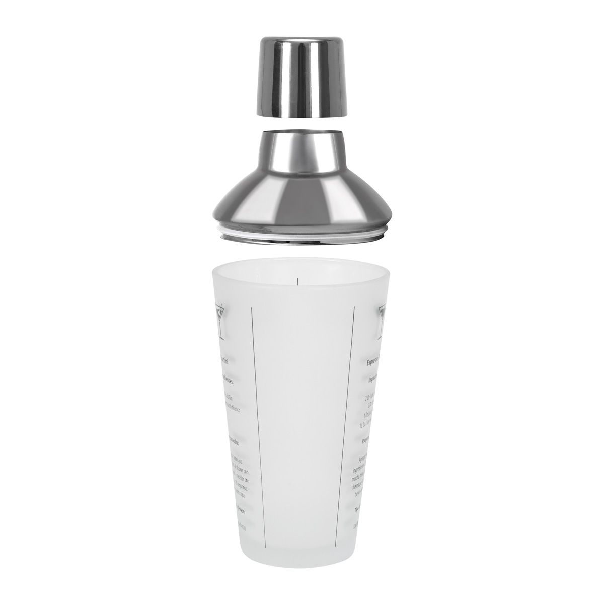 Shaker de cristal con 4 recetas incluidas. Conviertete en el barman perfecto con este shaker diseñado para facilitar la preparacion de cocteles profesionales en casa, guiandote paso a paso para crear bebidas como un experto. Podras preparar un expresso martini, margarita, whisky smash o martini. Incluye caja individual.