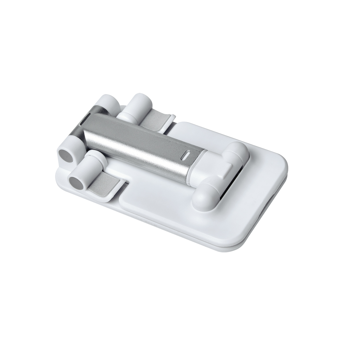 Soporte plegable. Soporte y base con material antiderrapante. Altura e inclinación ajustable. Desplegable a una altura máxima de 16 cm.
