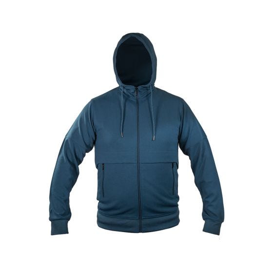 Sudadera deportiva con gorro ajustable. Incluye 2 bolsillos frontales con cierre, pullers metálicos, elástico en las muñecas y la cintura para un mejor ajuste. Fabricada con material texturizado suave al tacto 95% Poliéster, 5% Spandex