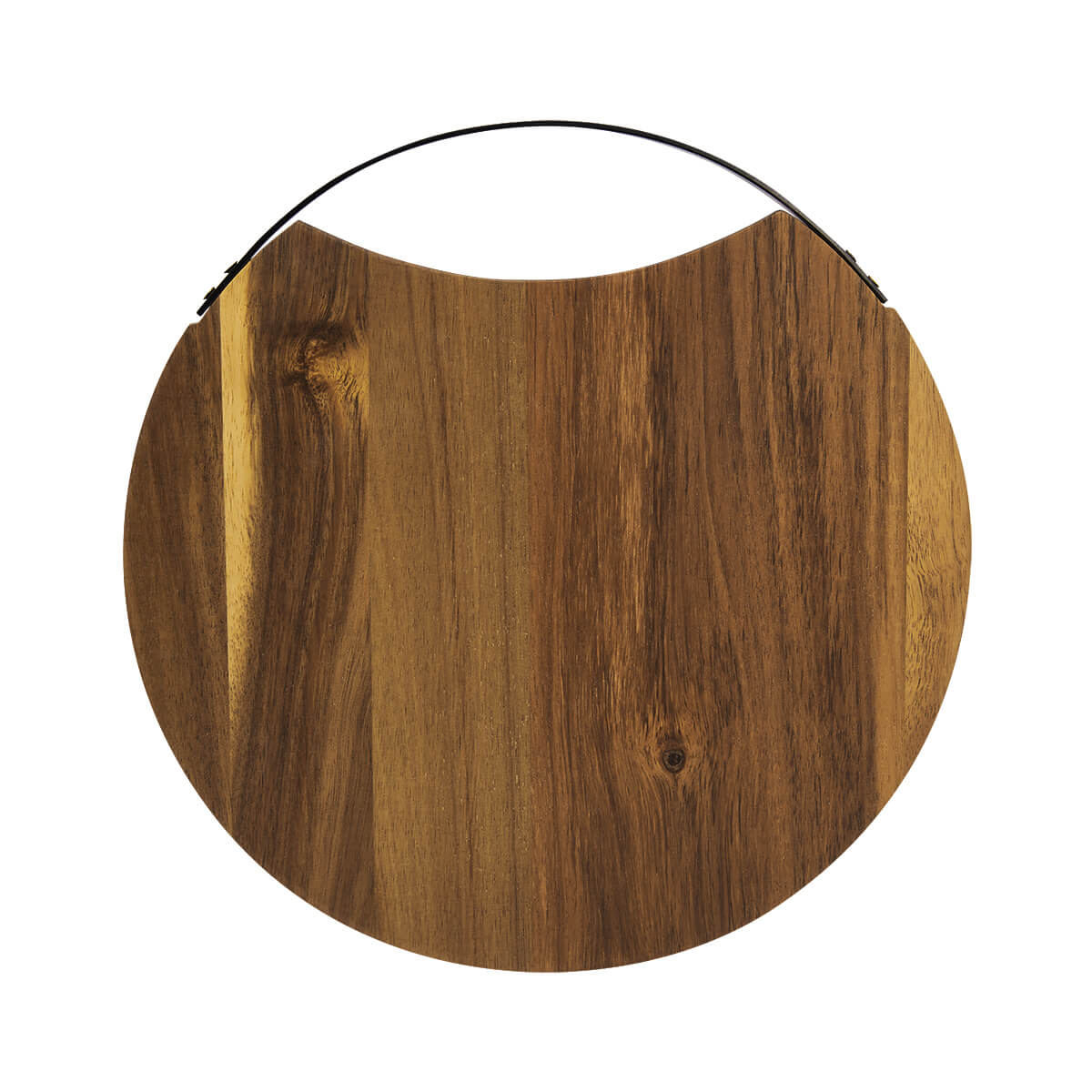 Tabla redonda de madera acacia para picar, con asa de metal