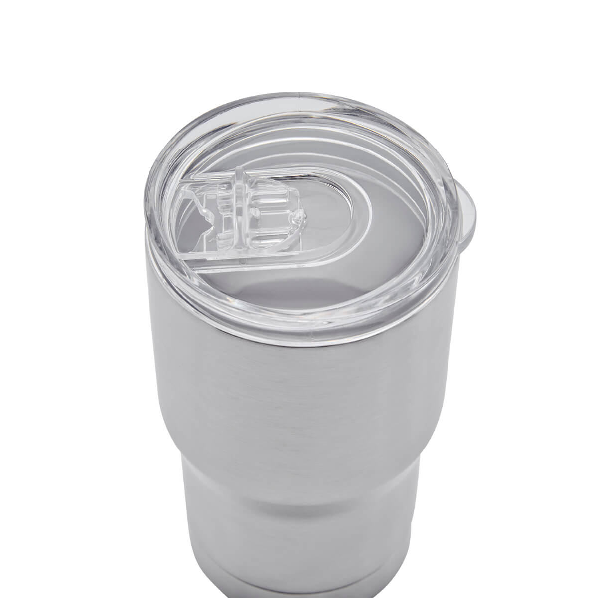 Doble pared. Cerrado al vacío. Pared interna y externa acero inoxidable. Incluye tapa de plástico con válvula de seguridad. Base metálica en color plata. Mantiene temperatura caliente 6 hrs y temperatura fría 8 hrs aproximadamente. Incluye caja individual.