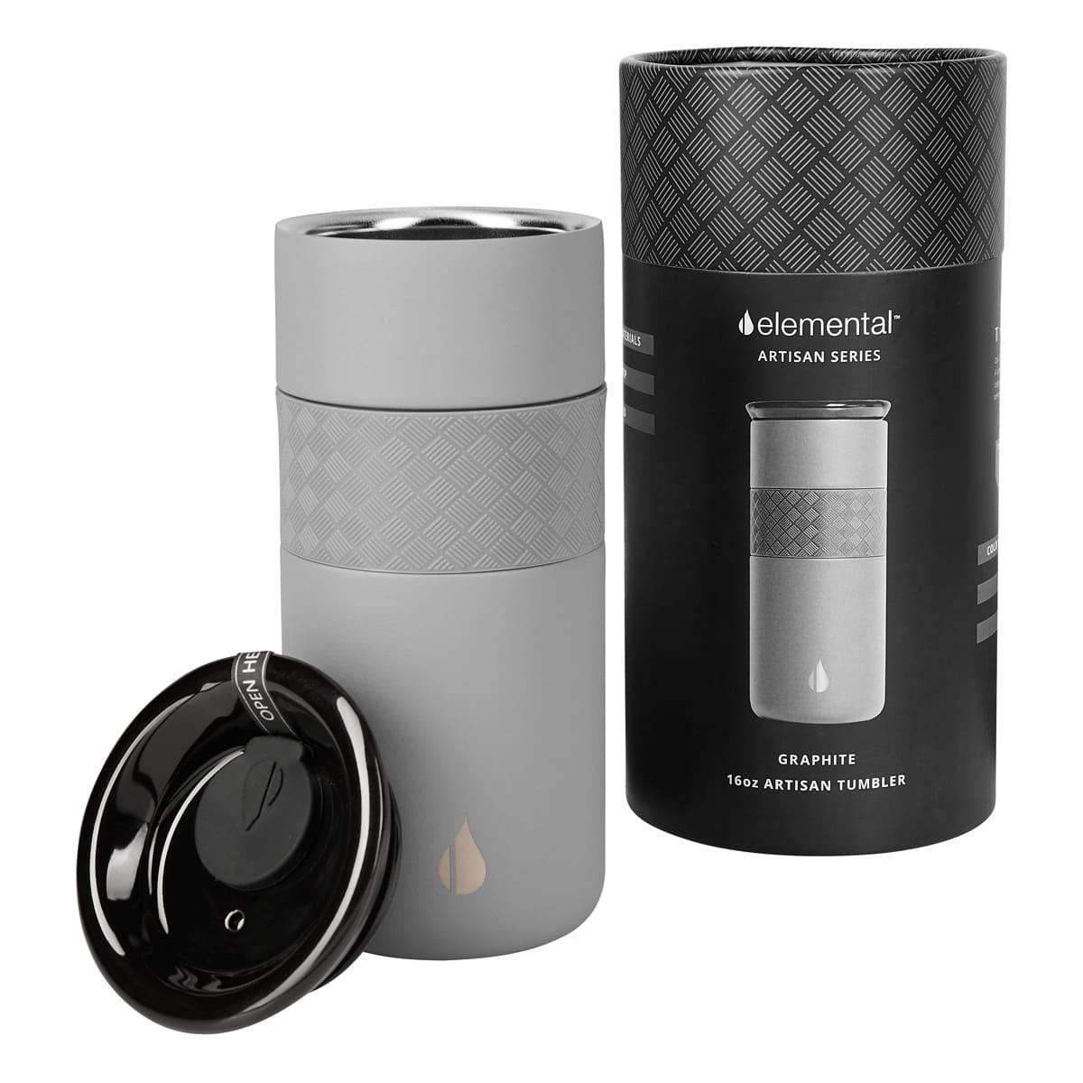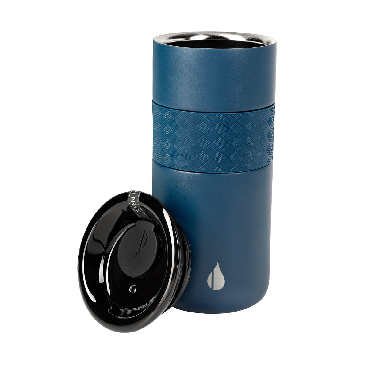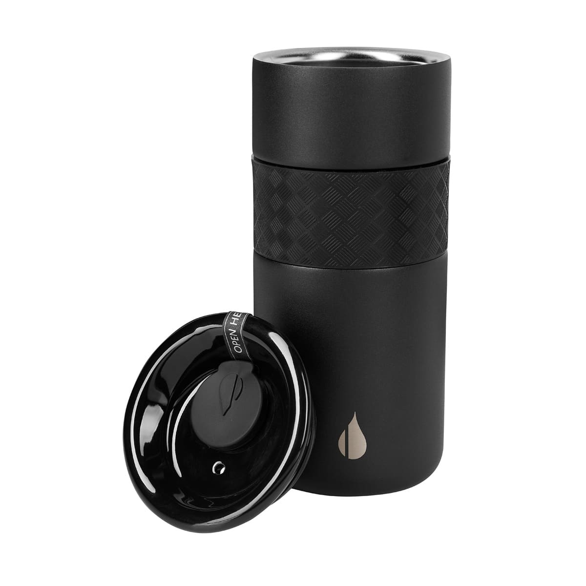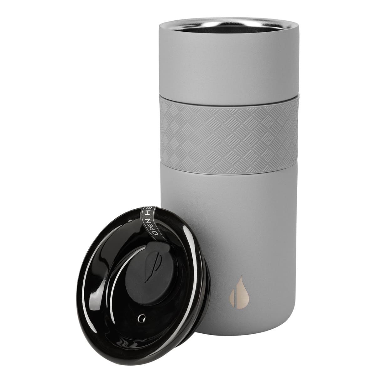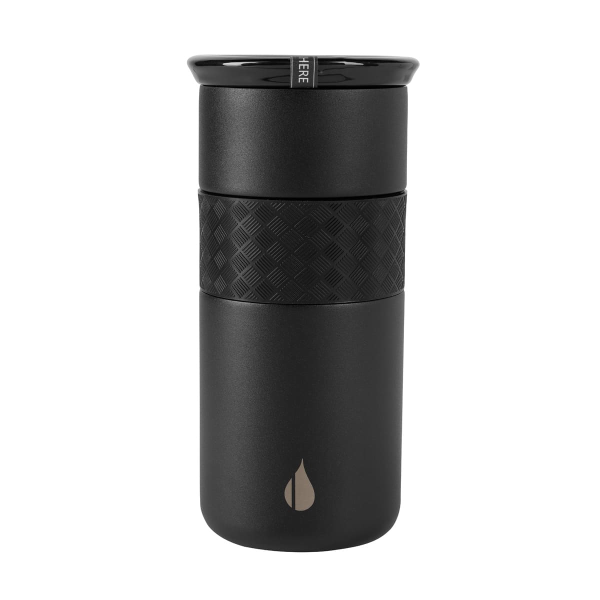 Tecnología TrueBarrier™ que usa aislamiento de triple pared. Doble pared de acero inoxidable y una capa de revestimiento de cobre. Cerrado al vacío. Material BPA free. Tapa de cerámica con tapón de seguridad, su forma evita derrames y quemaduras al tomar. Banda de silicón texturizada antiderrapante. Compatible con portavasos. Base antiderrapante. Mantiene temperatura caliente 6 hrs y fría 18 hrs aproximadamente. Incluye caja individual