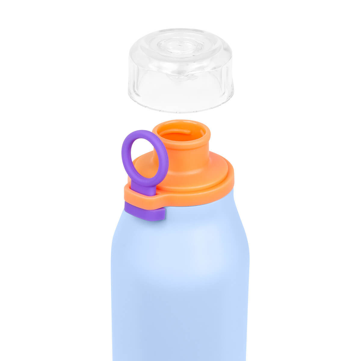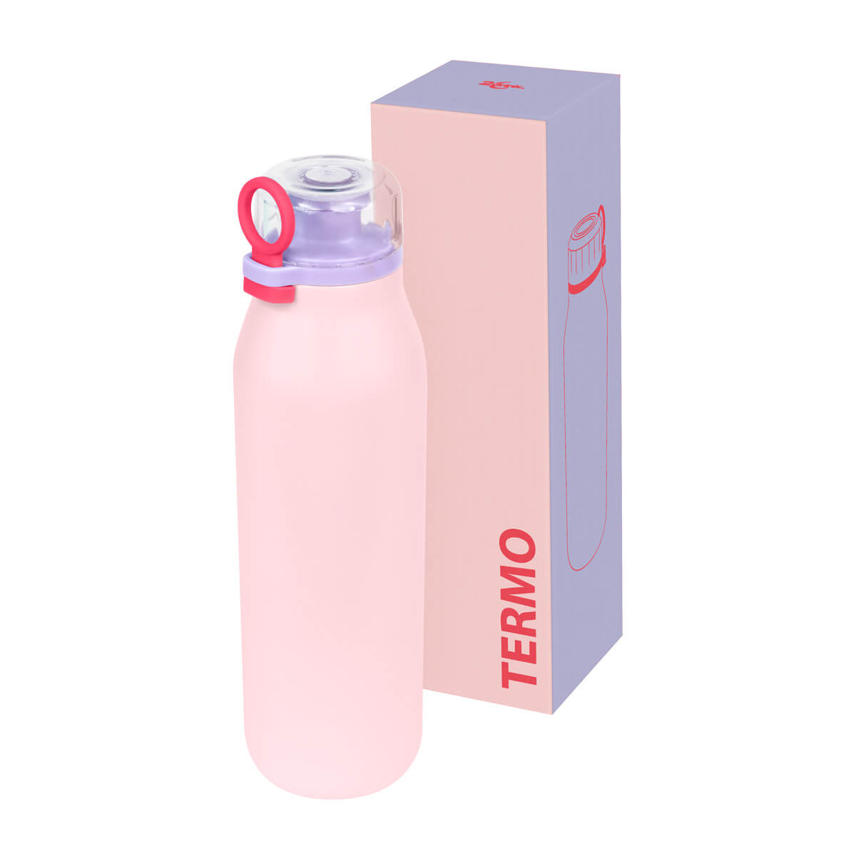Termo doble pared. Cerrado al vacio. Pared interna y externa de acero inoxidable. Tapa son sistema de rosca y amplia boquilla para beber facilmente o verter con mayor facilidad tus bebida favoritas. Incluye una pequena asa de silicon que favorece su transporte. Diseno unico, con una divertida fusion de colores cuidadosamente seleccionados, que lo convierten en un accesorio exclusivo, moderno y diferente a cualquier otro. Mantiene temperatura caliente 6 hrs y temperatura fria 6 hrs. Capacidad 20 Oz. Incluye caja individual.