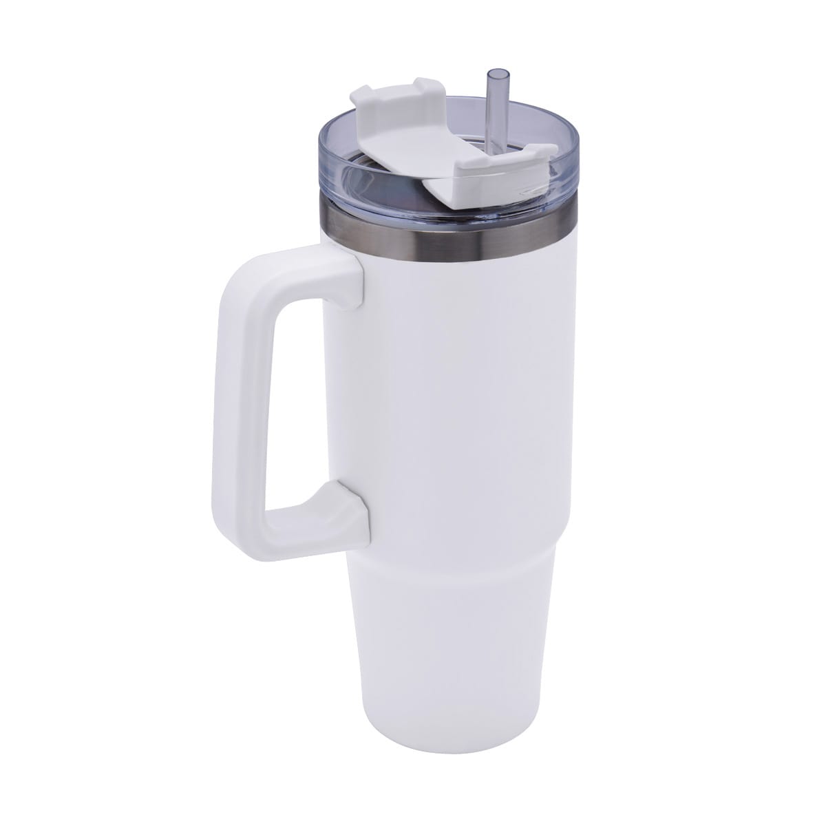 Doble pared. Pared interna y externa de acero inoxidable. Sellado a vacío. Tapa de plástico con cierre de rosca y sobretapa giratoria de 3 posiciones con ranura para popote. Incluye popote y asa de plástico. Mantiene temperatura caliente 6 hrs y temperatura fría 8 hrs aproximadamente. Incluye caja individual.