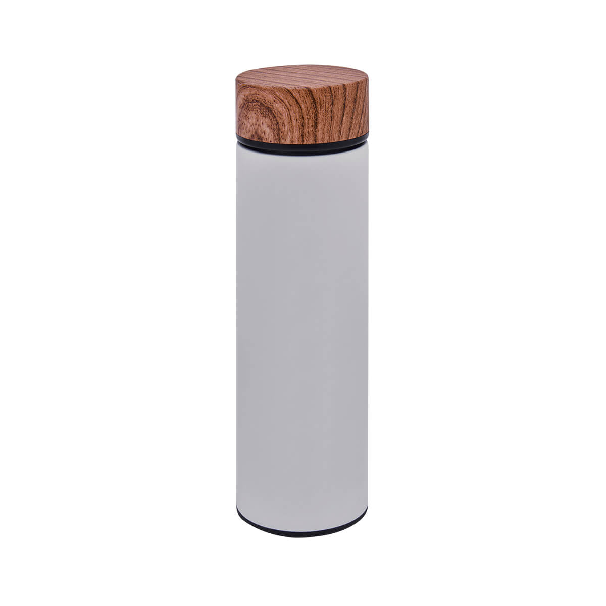Doble pared. Cerrado al vacío. Pared interna y externa de acero inoxidable. Terminado tipo rubber. Incluye tapa de plástico simulación madera. Mantiene temperatura caliente 6 hrs y temperatura fría 8 hrs aproximadamente. Incluye caja individual.