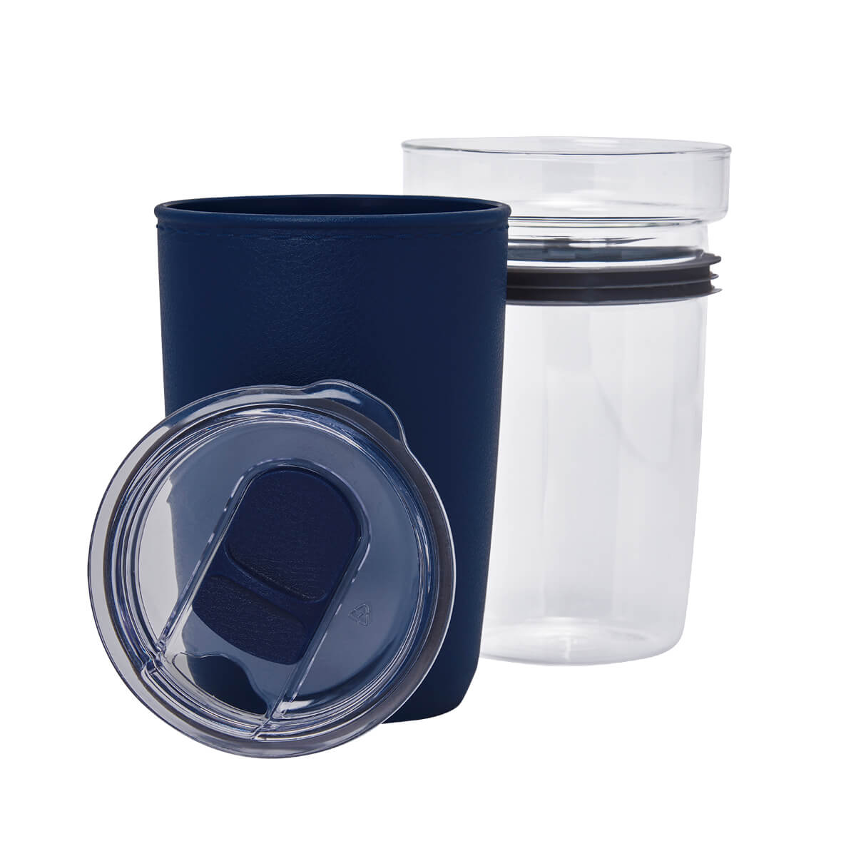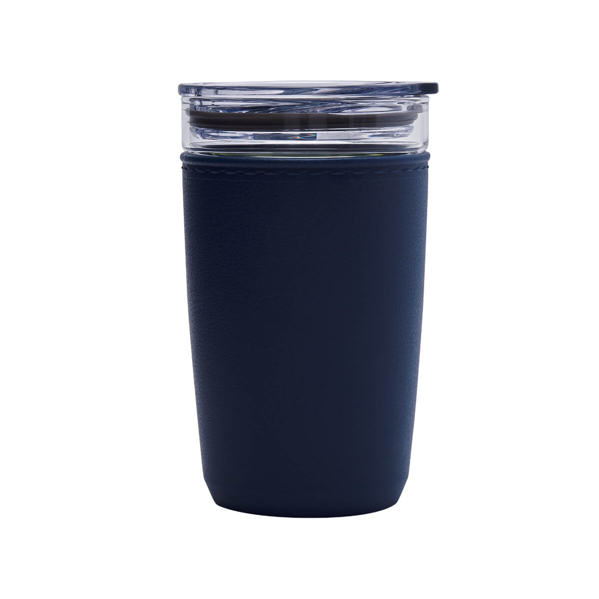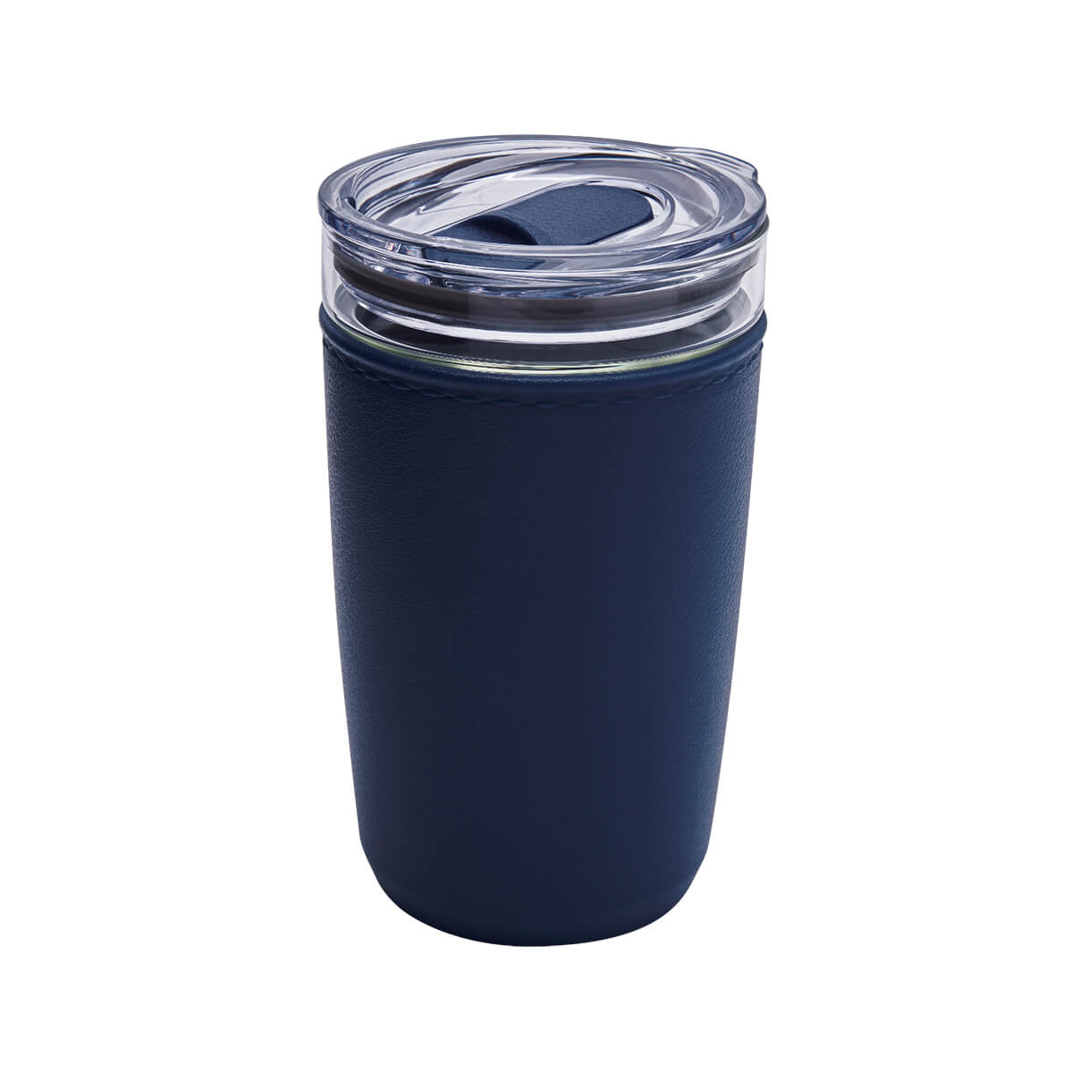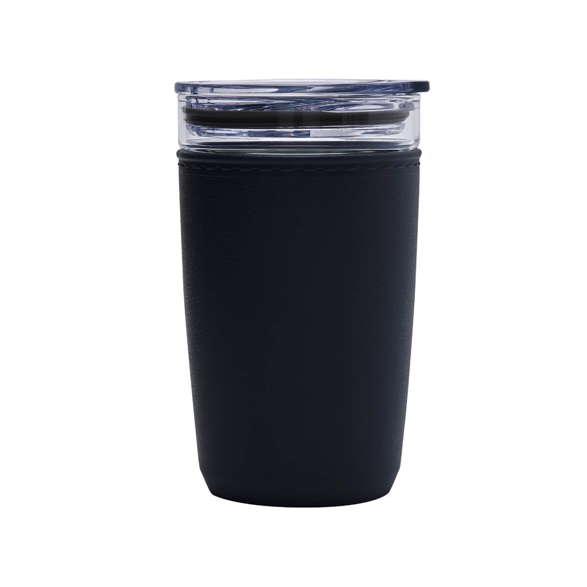 Termo doble pared. Interior de vidrio y exterior de plástico reciclado. Resistente a los cambios de temperatura. Tapa de plástico con válvula de seguridad. Incluye caja individual.