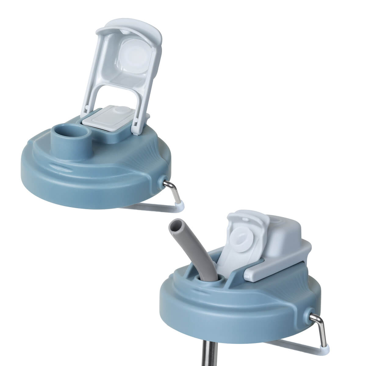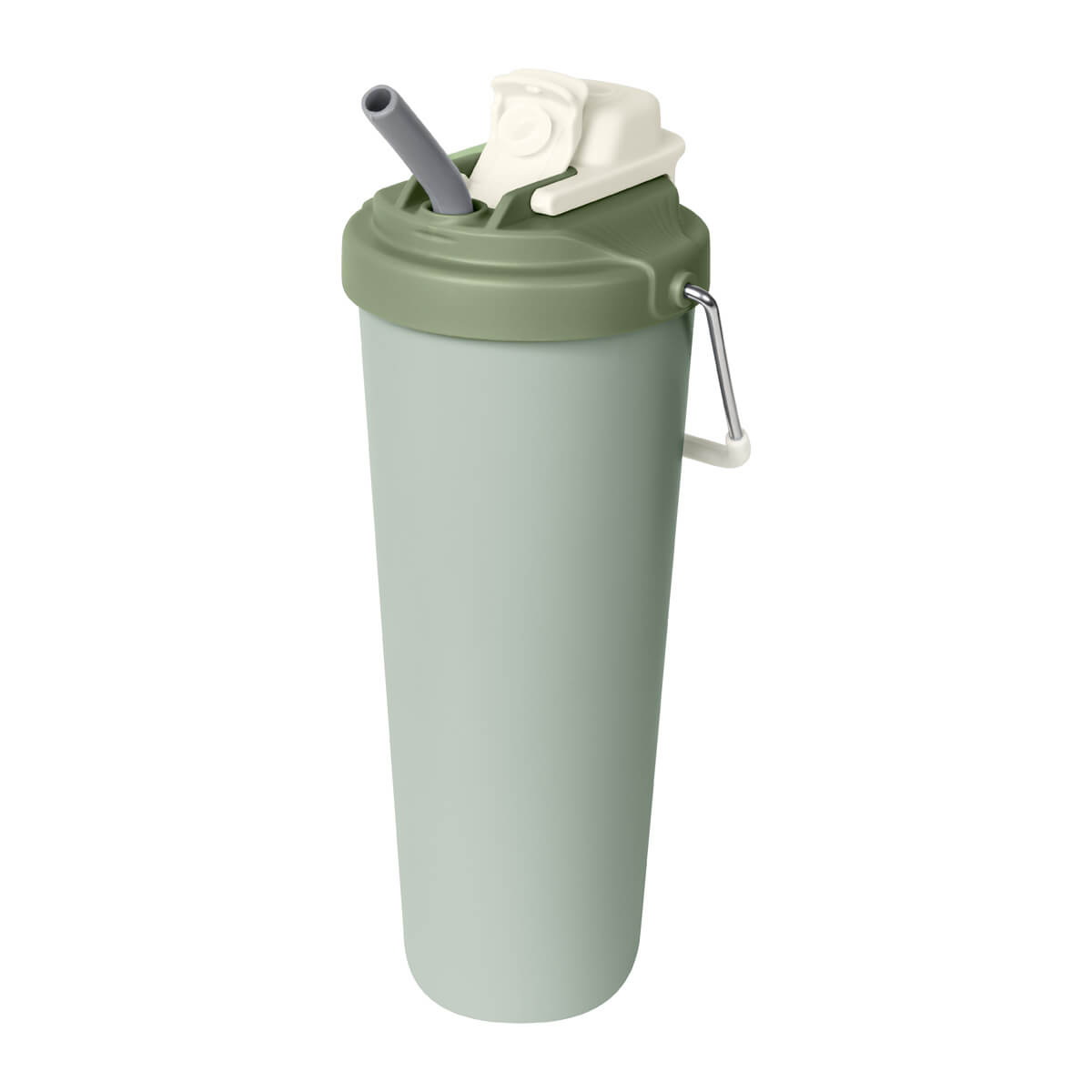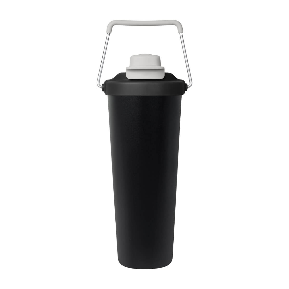 Termo doble pared. Cerrado al vacio. Pared interna y externa acero inoxidable. Cuerpo con terminado rugoso. Tapa de plastico con sistema de rosca y doble sobretapa con cierre push, una con boquilla para beber y otra con ranura para popote. Agrega un asa metalica con recubrimiento de silicon para llevarlo contigo a todos lados. Mantiene la temperatura caliente por 4 hrs y la temperatura fria por 8 hrs. Capacidad de 25 Oz. Base de 7 cm de diametro. Incluye caja individual.