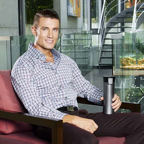 TERMO KUMASI(Doble pared. La tapa incluye botón pulsador para abrir y cerrar con sistema desmontable. Cerrado al vacío.)