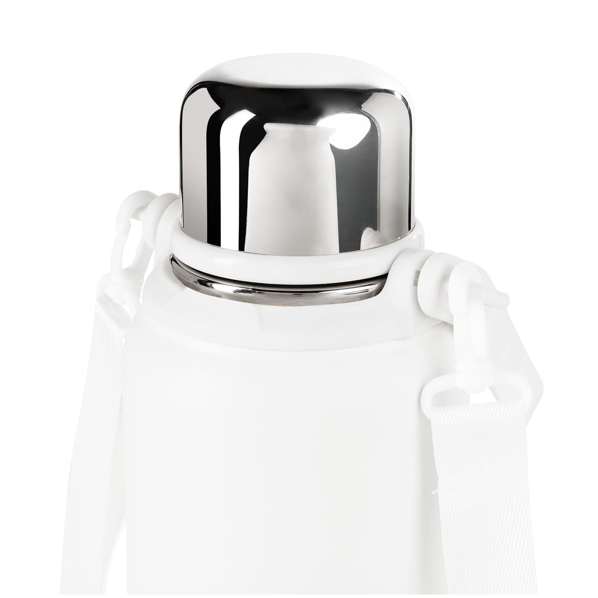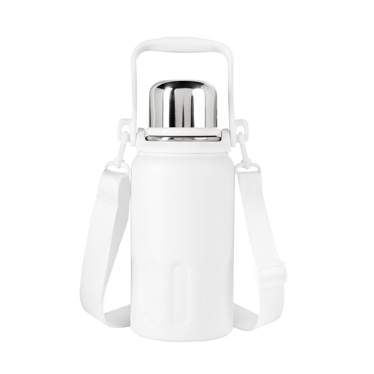 Termo doble pared. Cerrado al vacio. Pared interna y externa acero inoxidable y cuerpo con terminado tipo rugoso. Tapa de plastico con sistema de rosca, boquilla y boton de seguridad para mantener cerrado y sin derrames, incluye sobretapa metalica de rosca. Ademas, agrega un asa plegable de plastico y un asa de poliester removible, que facilita su traslado. Mantiene la temperatura caliente por 10 hrs y la temperatura fria por 12 hrs. Capacidad de 40 Oz. Incluye caja individual.