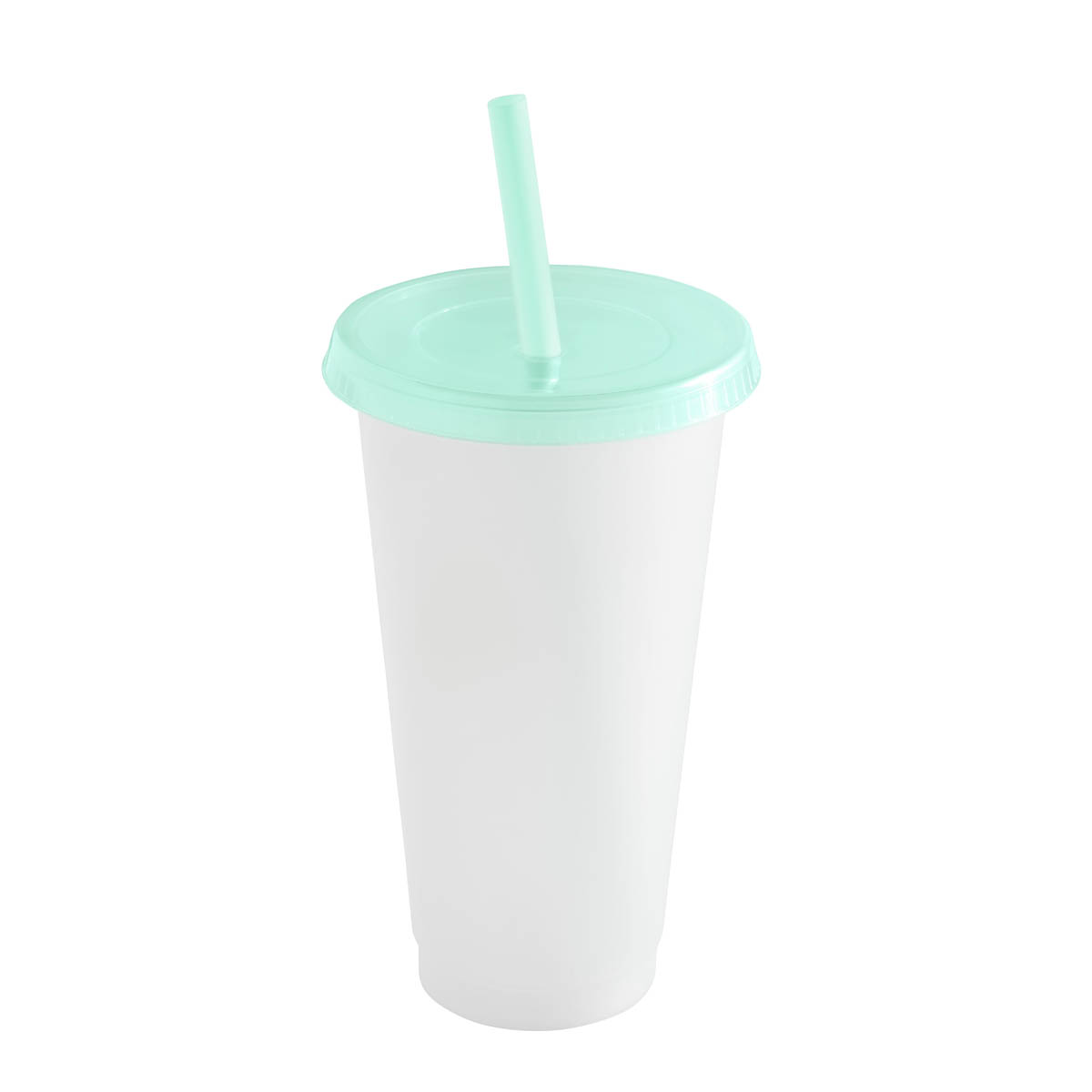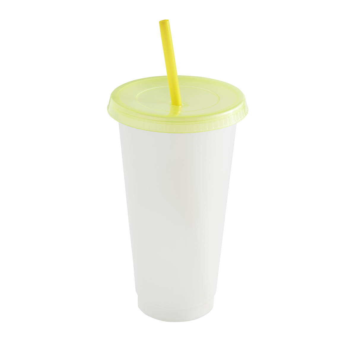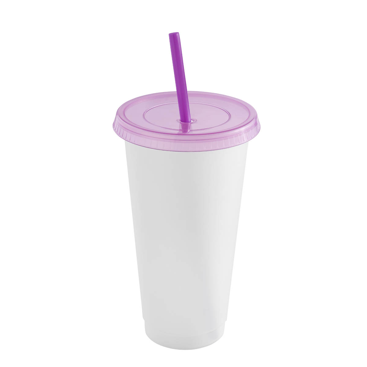 Vaso de plástico de una pared. Añade fantasía y diversión, con el cambio de color al llenar con bebidas frías. Su tapa y el popote coinciden con el tono que el vaso revela al enfriarse, creando un conjunto armonioso y atractivo. Perfecto para quienes buscan una experiencia refrescante y visualmente atractiva en cada bebida. Capacidad 27 Oz. Base de 6.4 cm. Incluye caja individual.