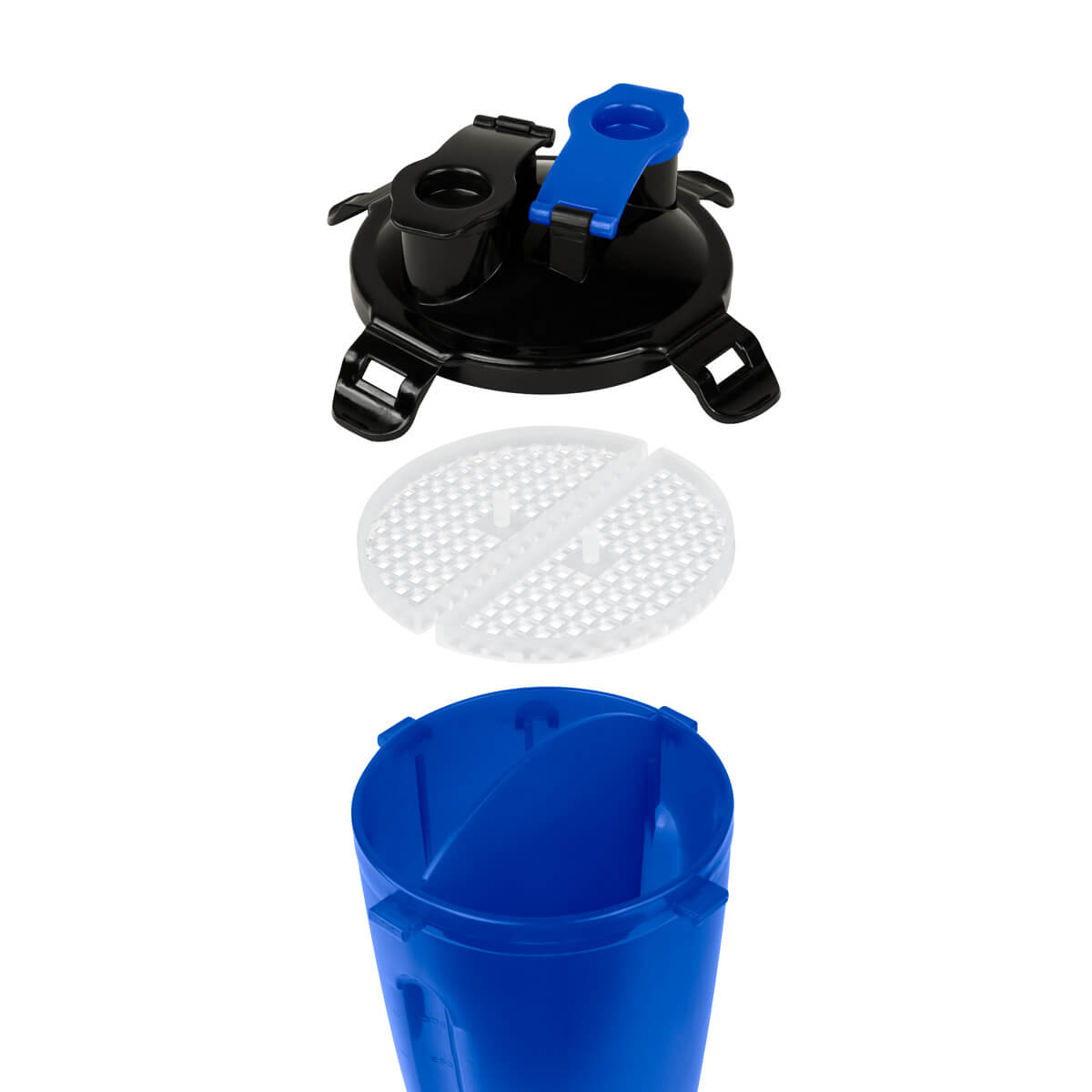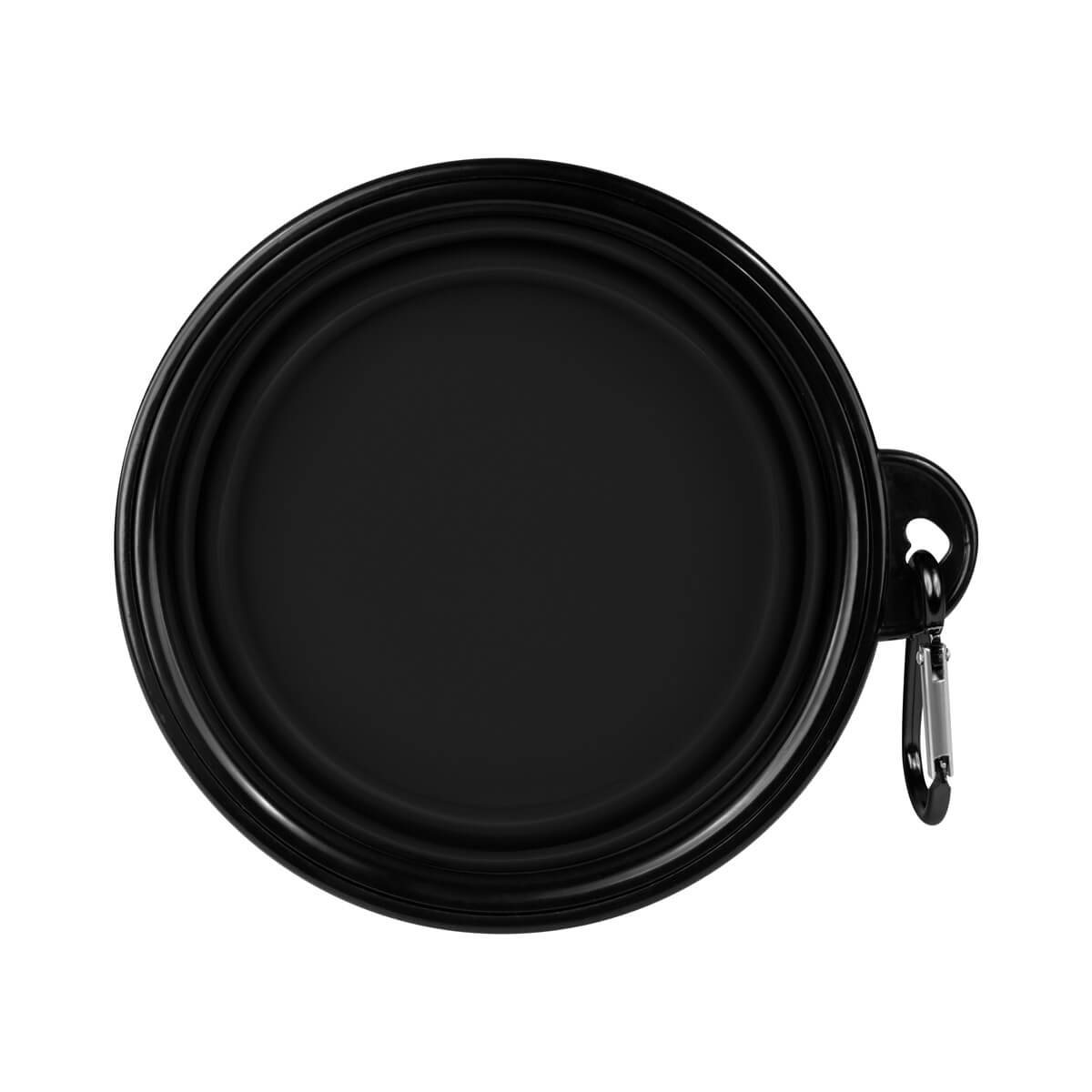 Vaso para portatil 2 en 1 para mascotas. Una pared de plastico, con tapa hermetica, 4 broches de seguridad y 2 boquillas con mecanismo tipo push. Cuenta con compartimentos separados para agua (350 ml) y alimento (250 g), Incluye un plato plegable de silicon con gancho metalico para facil transporte. Ideal para paseos o viajes con mascotas. Capacidad 120 Oz. Base de 7.7 cm de diametro.