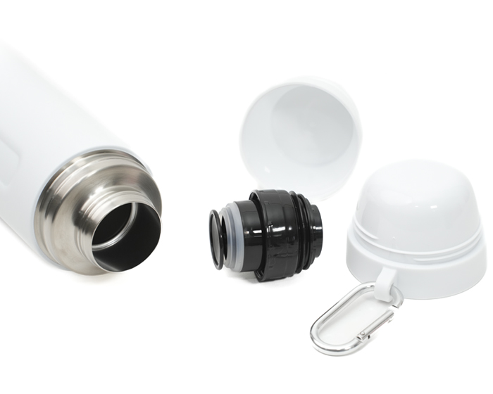 Termo de acero inoxidable de doble pared insulado al alto vacío, permite conservar por más tiempo las bebidas calientes o frías; cuenta con dos tapas de plástico, que se pueden usar como vasos para beber, un gancho mosquetón desmontable para colgarse en cualquier mochila y transportarlo fácilmente. Tiene una boquilla anti derrames de rosca, para facilitar el uso, el llenado y limpieza del termo, funciona presionando al centro para abrir o cerrar el mismo. Es ideal para actividades al aire libre. CAP. 750 ml. Presentación: caja individual.