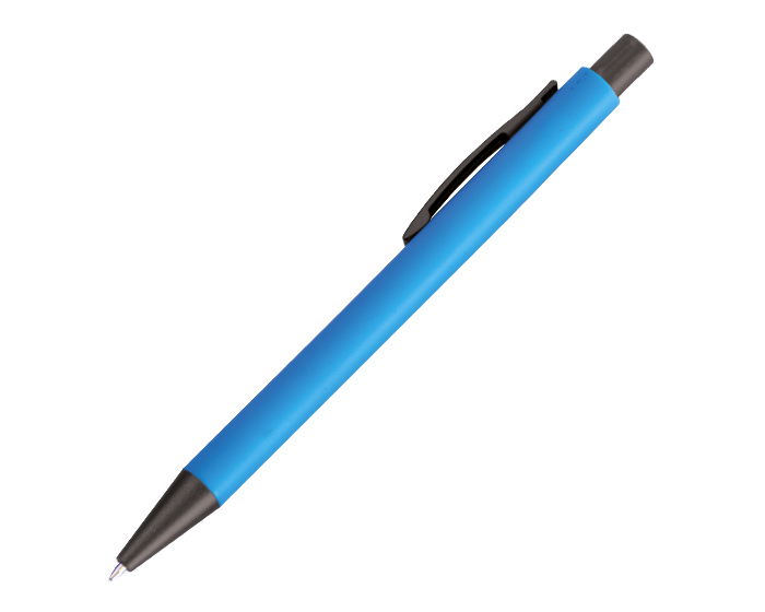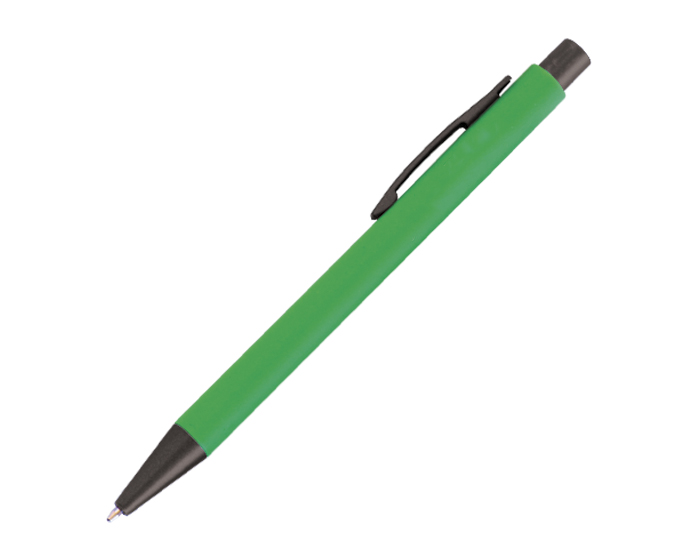Bolígrafo de plástico con cuerpo mate y clip metálico. Mecanismo de click.