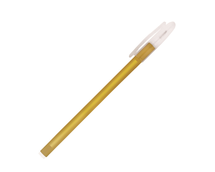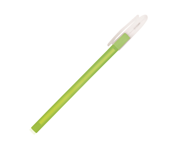 Bolígrafo de plástico con cuerpo de color y tapa traslúcida con clip.