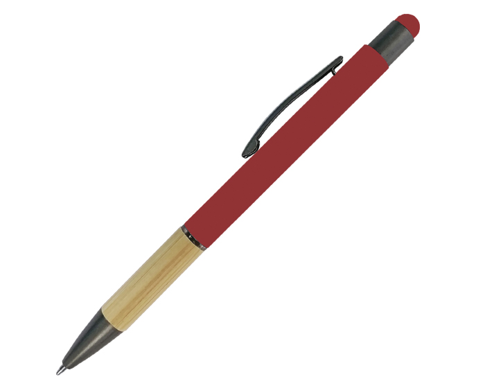 Bolígrafo de aluminio con touch screen, grip de bambú, clip de metal, cuerpo con terminado tipo rubber. Mecanismo de click.