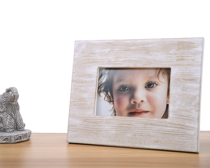 Portarretratos de madera glaseada con ventana de vidrio, ideal para fotografías de 10 x 15 cm. Cuenta con soporte de MDF, perillas de seguridad y sujetador para colgarse. Se puede acomodar de forma horizontal o vertical. Presentación: caja blanca.