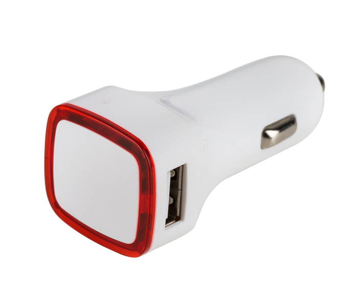 CARGADOR PARA AUTOM͓VIL CON 2 ENTRADAS USB. FINO DETALLE DE COLOR TRANSL͚CIDO EN CONTORNO. VOLTAJE 5.1V, 1A Y 2.1A. PRESENTACI͓N: CAJA EN COLOR BLANCO.
