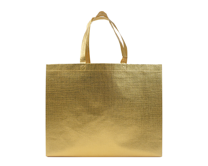 Bolsa termosellada de Non Woven metalizado de 105 grs., cuenta con 2 asas. Peso máximo de carga de 11 kgs.