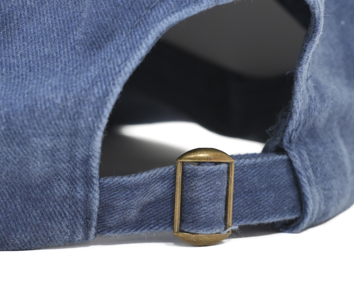 Gorra de algodón de 6 gajos, con acabado deslavado y ojillos bordados. Ajuste con hebilla metálica.