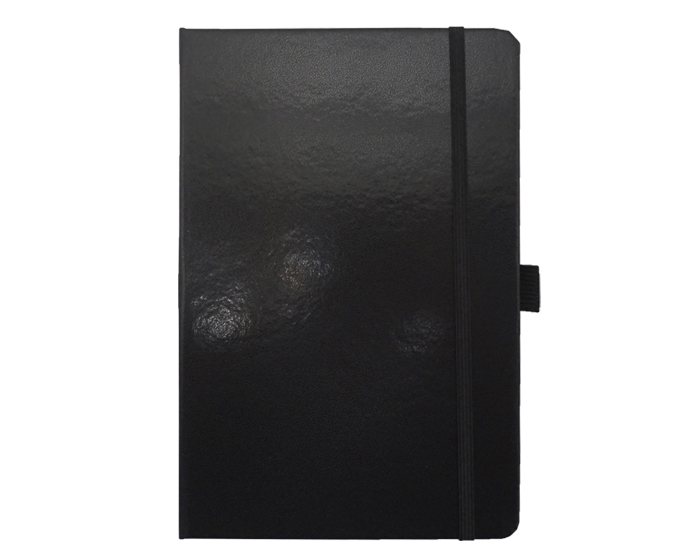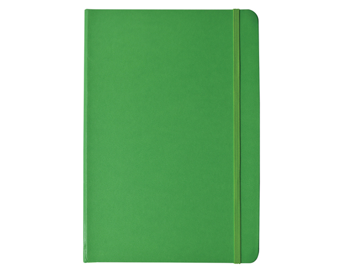 Libreta Stena de pasta dura, con forro plástico, 80 hojas (160 páginas). Incluye listón como separador y banda elástica para sujetar cubierta.