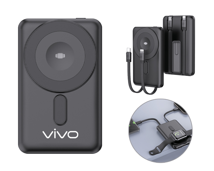 Batería inalámbrica portátil wireless de carga rápida, con función de carga magnética para dispositivos móviles (15W) y relojes inteligentes(2.5W). Capacidad de 5,000 mAh, 5 indicadores de luz de carga de la batería, entrada de carga tipo C (Incluye cable de carga), botón de encendido/apagado y 2 cables de salida para carga de dispositivos móviles: 1 entrada tipo C y uno entrada para I phone. Incluye soporte metálico para dispositivos móviles. Compatible con dispositivos Android e iOS. Presentación: Caja de regalo a color. (Verifique la compatibilidad con sus dispositivos móviles).