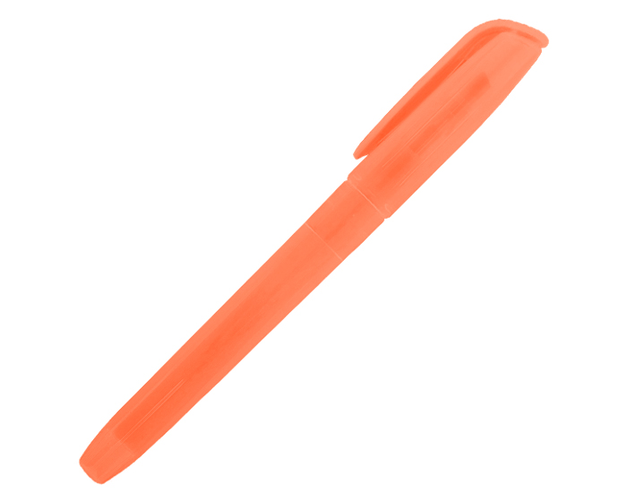 Marcador de plástico fosforescente de práctico diseño, con tapa y cuerpo que indican el color de la tinta.