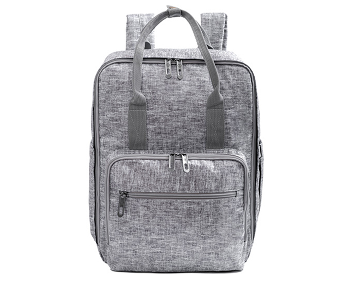 Mochila pañalera con tres compartimentos y dos bolsas laterales, una de ellas con ranura para toallas húmedas, abre a 180°. Bolso frontal con tres espacios térmicos de alufoil. Compartimiento interior con organizadores para accesorios y dos bolsas con cierre. Correas acolchadas ajustables, doble asa con broche a presión.