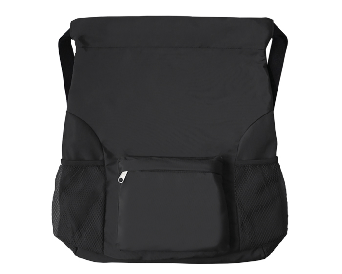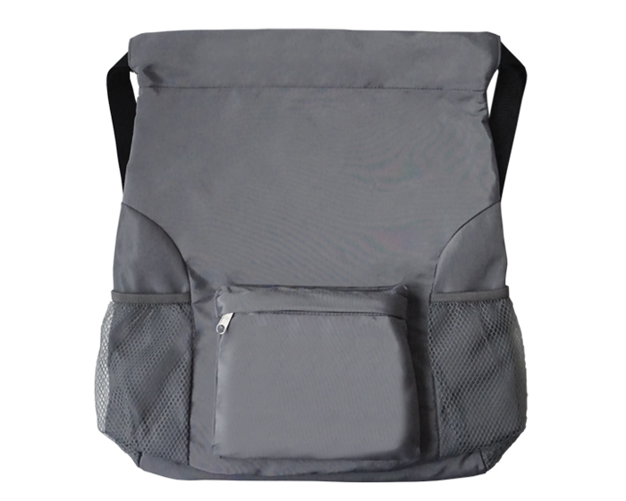 Morral tipo backpack semi-impermeable con tirantes ajustables que sirven para cerrar el producto, bolsas laterales de malla e interior con doble forro y división para guardar accesorios. Cuenta con un compartimento frontal con cierre.