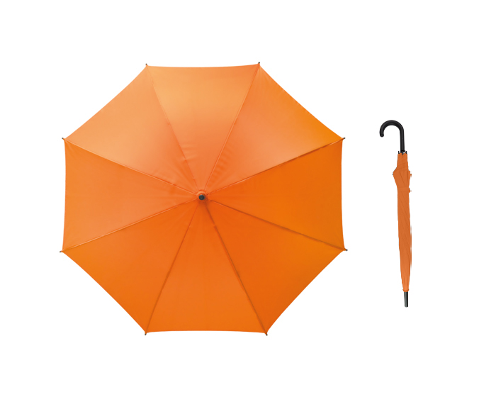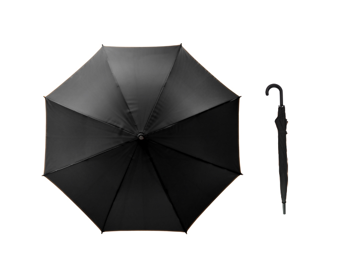 Paraguas antiviento con botón de apertura automático, varillas de fibra de vidrio, eje de metal y mango de plástico. 8 gajos.