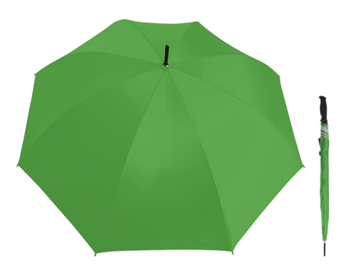 Paraguas circular con forro de protección UV, sistema de apertura automatico, varillas reforzadas, mango ergonómico en plástico antiderrapante.