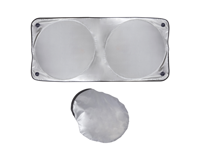 Parasol Ovalle plegable. Evita que el interior se caliente por exposición al sol. Incluye funda para guardar con medidas de 22.5 x 24 cm.