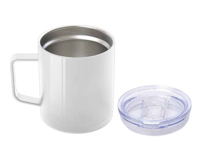Termo de doble pared para sublimación insulado al alto vacío. Mantiene las bebidas frías por 8 hrs y calientes por 4 hrs. Tapa transparente de cierre a presión con seguro deslizable y asa. CAP. 350 ml. (12 Oz.). Presentación: Caja en color negro.