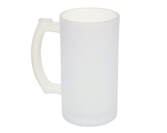 Tarro de vidrio satinado para cerveza. CAP. 450 ml. Temperatura y Tiempo sugeridos para sublimar: 190 grados / 120 seg. Venta en múltiplos de 2.