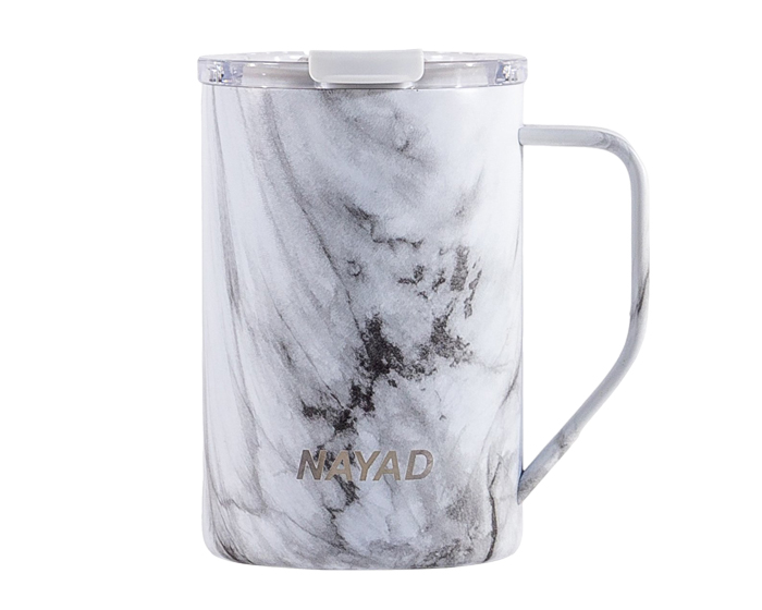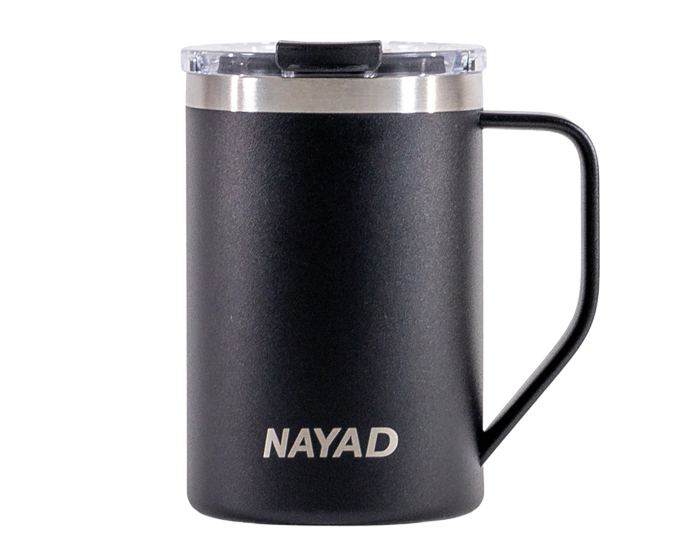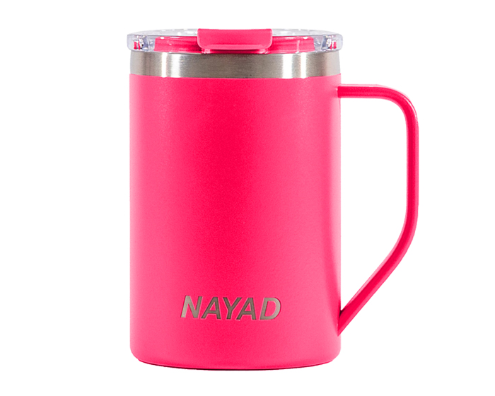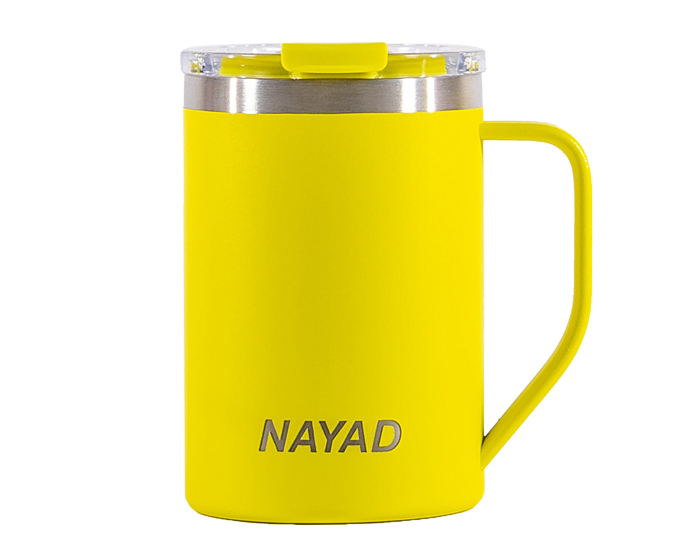 Tarro térmico de doble pared marca NAYAD de acero inoxidable 304 insulado al alto vacío cuenta con capa interior de cobre que permite mantener las bebidas frías por 20 horas y calientes por 10 horas. Cubierta metálica con acabado de polvo plástico, asa ergonómica para un agarre más firme. Incluye tapa de tritán con cierre a presión, detalle metálico en el centro y tapón abatible que permite beber fácilmente sin derrames. CAP. 443 ml. Presentación: Caja de color