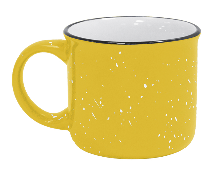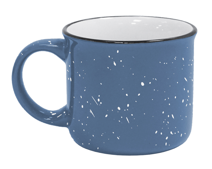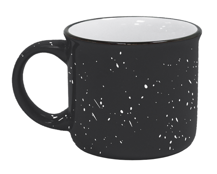 Taza de cerámica de boca abierta con filo negro. Exterior en color, tipo peltre. Interior en color blanco liso. CAP. 400 ml (14 OZ.) Venta en múltiplos de 12.