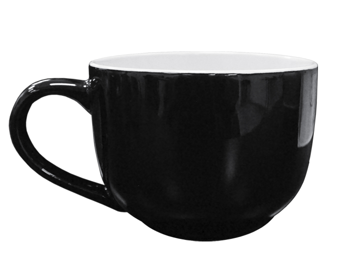 Taza de cerámica grande de forma redonda. Ideal para servir cereal con leche, sopa, o gran cantidad de café. CAP. 18 OZ. Venta múltiplos de 12.