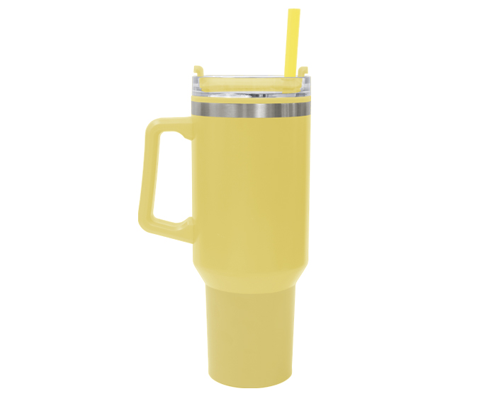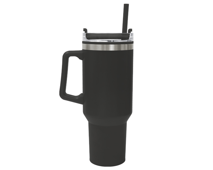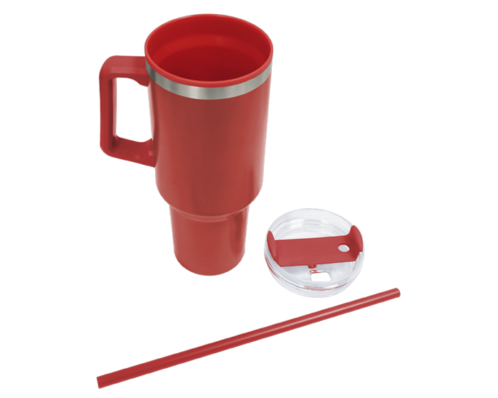 Tarro térmico con exterior de acero inoxidable e interior y asa de plástico. Incluye tapa transparente con cierre a presión y sobretapa giratoria, en color del termo, con ranura para popote. CAP. 40 OZ (1,200 ml). Presentación: Caja blanca.
