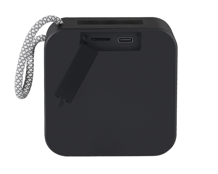 Bocina Bluetooth resistente al agua con tecnología TWS que cuenta con botón de encendido/apagado/pausa. Botón para atrasar y adelantar (subir y bajar volumen). Entrada de carga tipo C (incluye cable de carga), entrada para tarjeta Micro SD. Resistente al agua. Tiempo de reproducción 3-4 hrs. Tiempo de carga 2-3 hrs. Distancia del Bluetooth 10 metros. Cap. de batería 500 mAh. Incluye asa para transportar. Presentación: Caja de regalo a color.