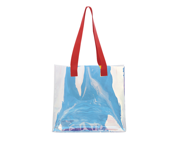 Bolsa con fuelle efecto tornasol con asas de color de poliéster.