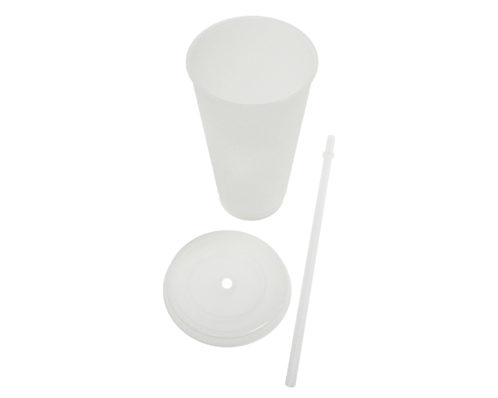 Vaso de plástico transparente, que brilla en la obscuridad, cuenta con tapa a presión y popote. CAP. 700 ml. *BPA FREE.