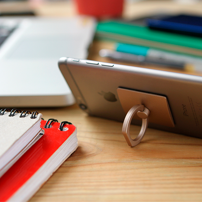 Anillo metálico cuadrado porta celular para mano, también funciona como soporte para mesa. Ayuda a mejorar el agarre sobre el teléfono y prevenir caídas.